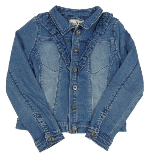 Modrá tepláková riflová crop bunda s volánky QUAPI