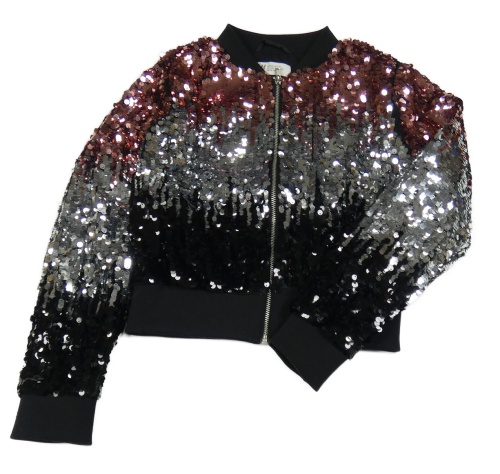 Růžovo-stříbrno-černá flitrová crop bunda H&M