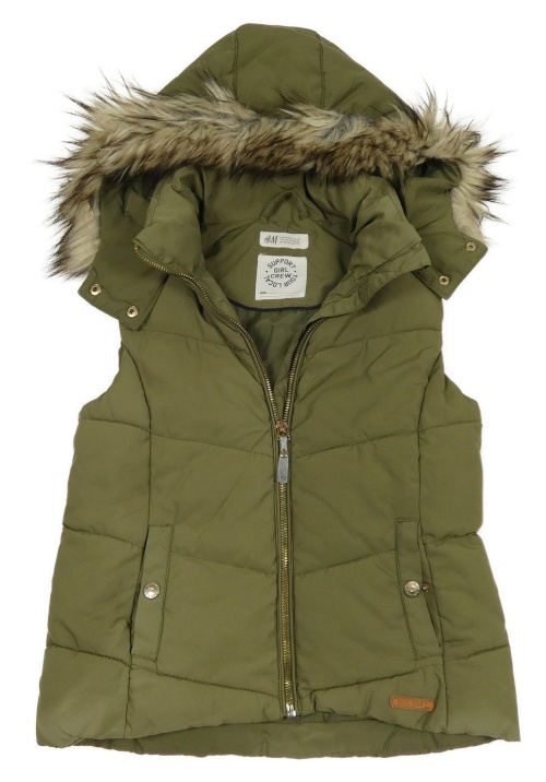 Khaki šusťáková prošívaná zateplená vesta s odepínací kapucí H&M