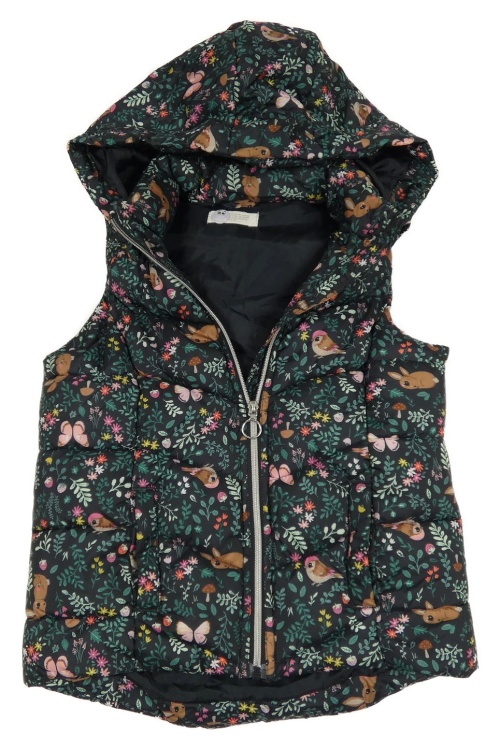 Černá květovaná šusťáková zateplená vesta s králíky a kapucí H&M