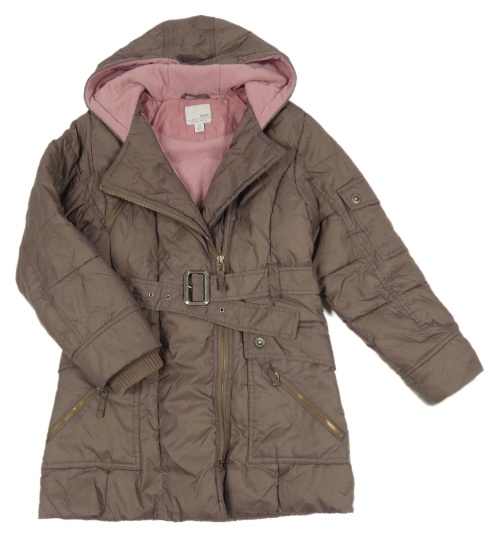 Hnědý šusťákový zimní kabát s páskem a kapucí Next