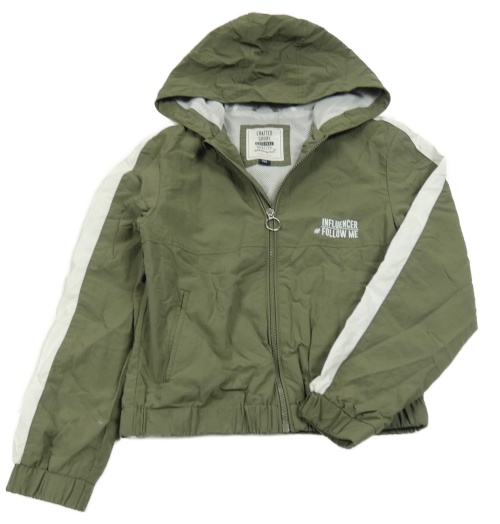 Khaki šusťáková jarní crop bunda s nápisem a kapucí C&A