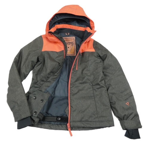 Korálovo-tmavošedá šusťáková lyžařská bunda s kapucí