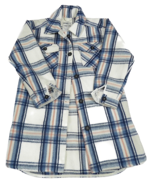 Bílo-modro-růžová kostkovaná dlouhá košilová bunda Page One Young