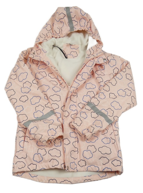 Světlerůžová nepromokavá zateplená bunda s mraky a kapucí