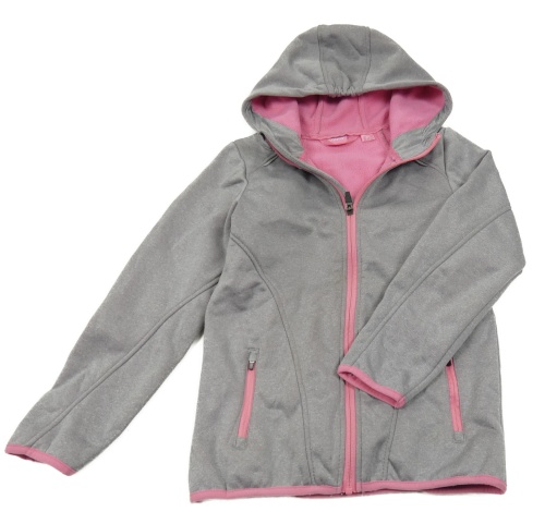 Šedá softshellová bunda s růžovými zipy a kapucí Crivit
