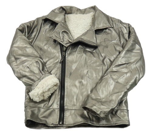 Stříbrná koženková zateplená bunda