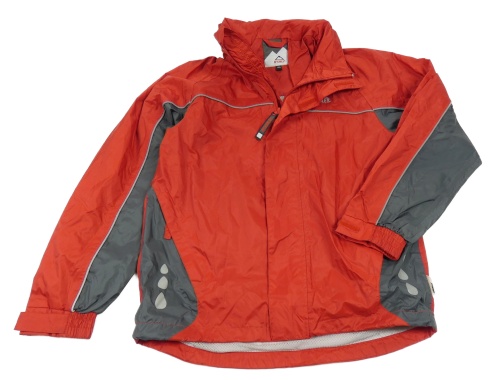 • Červeno-tmavošedá šusťáková funkční jarní bunda s ukrývací kapucí McKinley