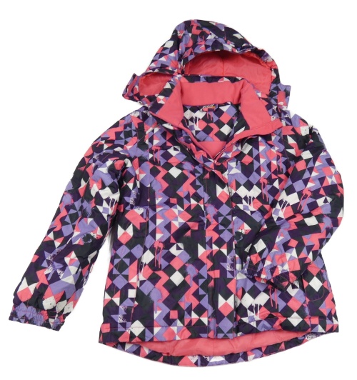 Fialovo-růžová vzorovaná šusťáková funkční lyžařská bunda s kapucí Crivit