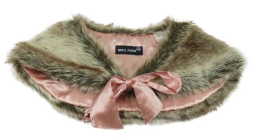 Hnědo-béžová kožešinová podšitá pelerína s mašlí