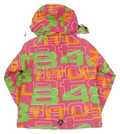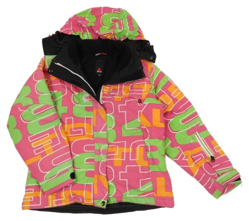 Růžovo-zelená vzorovaná lyžařská bunda s kapucí