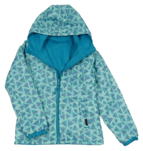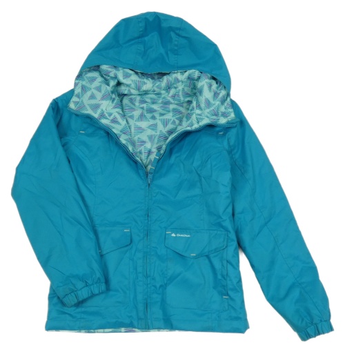 Světlemodrá vzorovaná šusťáková oboustranná zateplená bunda s kapucí Quechua