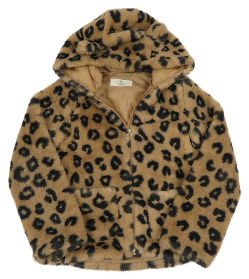 Béžovo-černá vzorovaná kožešinová podšitá bunda s kapucí H&M