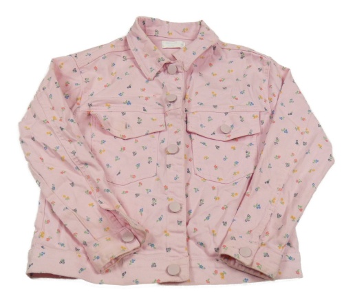 Světlerůžová riflová bunda s kytičkami a límečkem LEIGH TUCKER