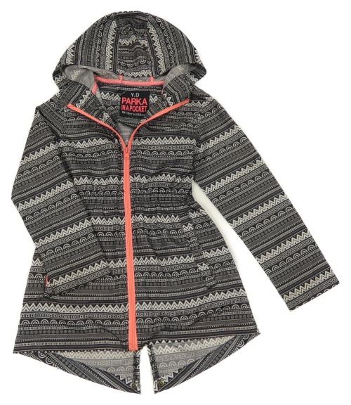 Černo-bílá vzorovaná šusťáková jarní parka s kapucí Yd.