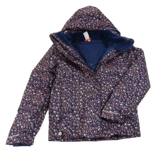 Tmavomodro-růžová vzorovaná šusťáková lyžařská funkční bunda s kapucí wedze