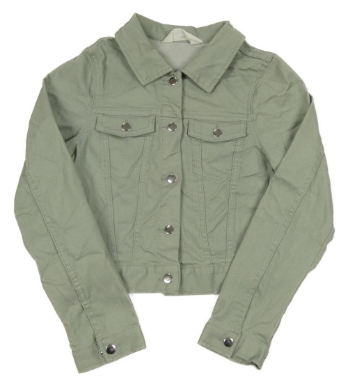 Olivová tepláková riflová crop bunda s límečkem H&M