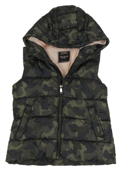 Army prošívaná šusťáková zateplená vesta s hvězdičkami a kapucí