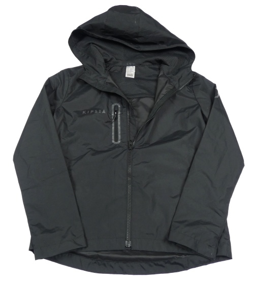 Černá šusťáková funkční jarní bunda s logem a kapucí KIPSTA