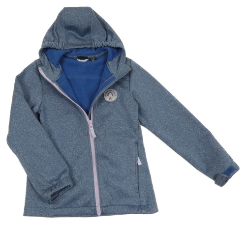 Tmavomodrá melírovaná softshellová funkční bunda s nášivkou a kapucí Active Touch