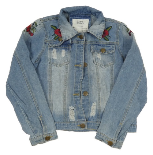 Modrá riflová bunda s výšivkami květin a prošoupáním