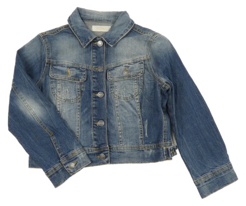 Modrá riflová crop bunda ošoupaného vzhledu a límečkem ViCOLO