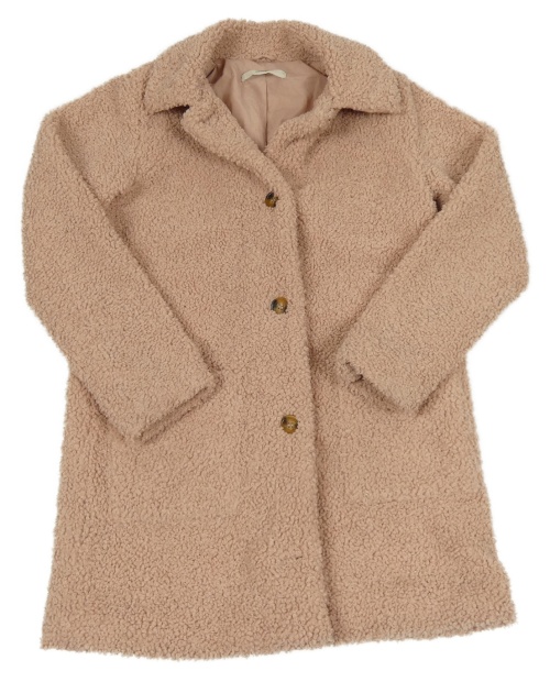 Pudrový huňatý podšitý kabát s límečkem George