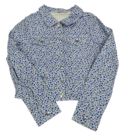 Smetanovo-modrá květovaná riflová crop bunda H&M