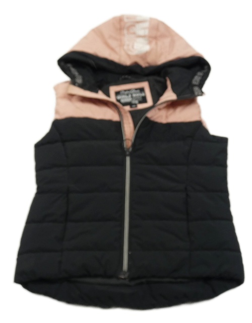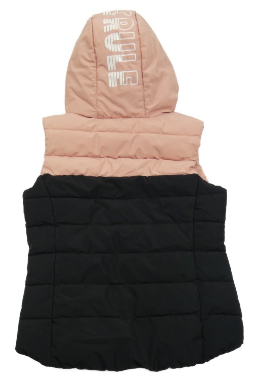 Černo-růžováá šusťáková prošívaná zateplená vesta s kapucí C&A