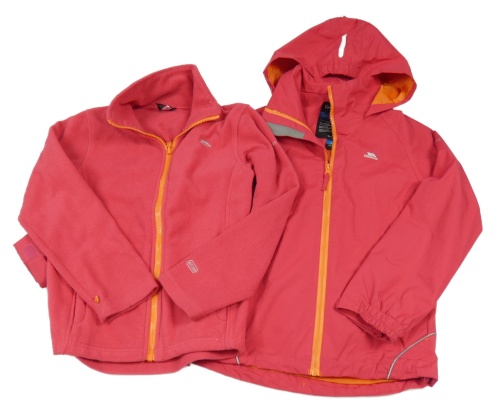 Růžová nepromokavá celoroční funkční bunda s kapucí + fleecová mikina Trespass