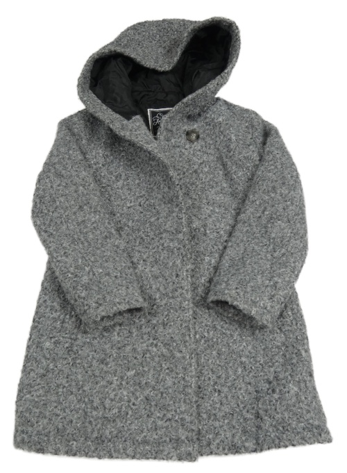 Šedý melírovaný huňatý zateplený kabát s kapucí C&A