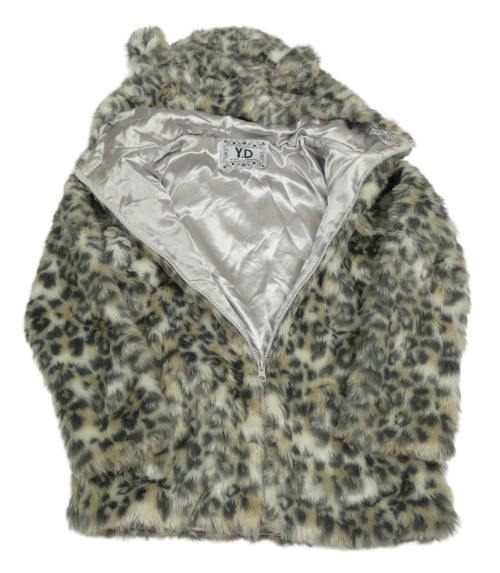 Šedo-smetanová kožešinová leopardí podšitá bunda s kapucí Yd.