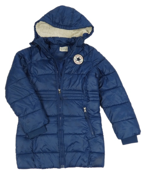 Tmavomodrý šusťákový prošívaný zimní kabát s odepínací kapucí Converse