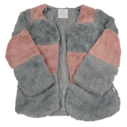 Šedo-starorůžová pruhovaná kožešinová podšitá bunda