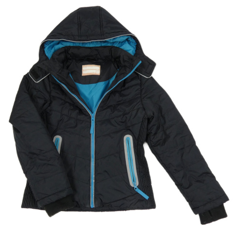 Tmavomodrá šusťáková zimní bunda s kapucí bpc