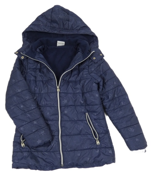 Tmavomodrá šusťáková zimní bunda s hvězdami a kapucí Yigga