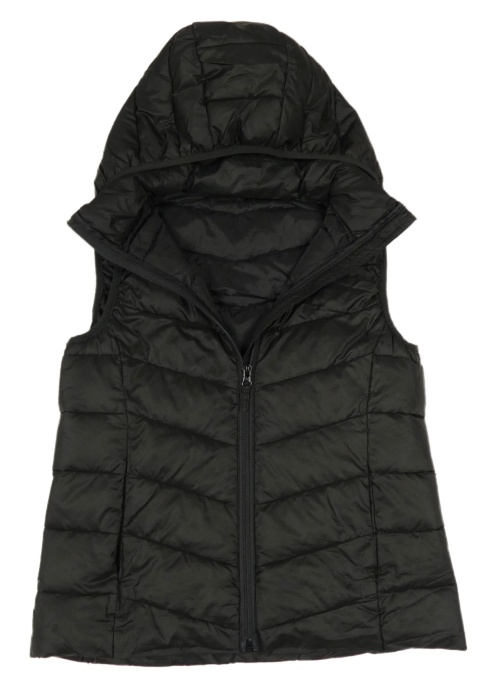 Černá prošívaná šusťáková zateplená bunda s odepínací kapucí H&M