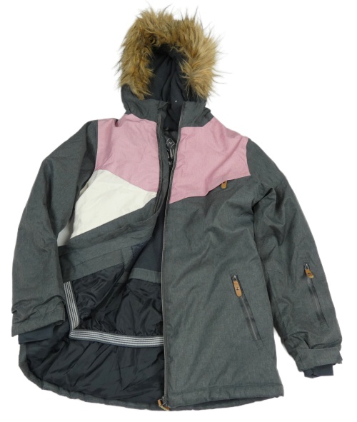 Šedo-růžovo-bílá šusťáková zimní bunda s kapucí Yigga