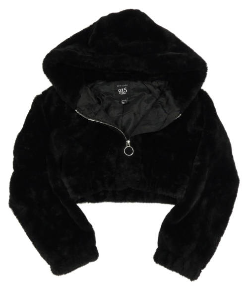Černá kožešinová podšitá crop bunda s kapucí New Look
