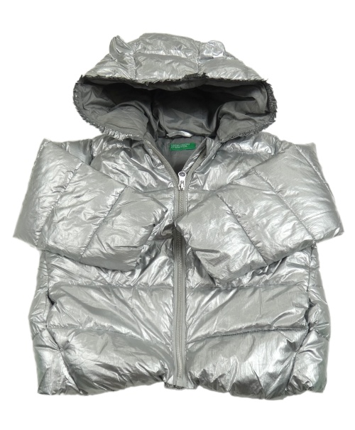 Stříbrná šusťáková zimní bunda s kapucí Benetton
