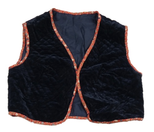 Tmavomodro-červené prošívané semišové podšité bolérko s kytičkami