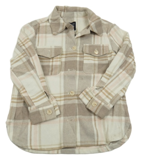 Smetanovo-hnědošedo-světlerůžová kostkovaná vlněná košilová bunda New Look