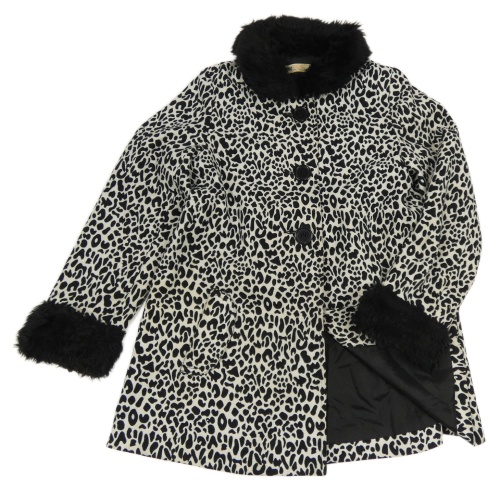 Bílo-černý vzorovaný podšitý kabát s kožešinou H&M