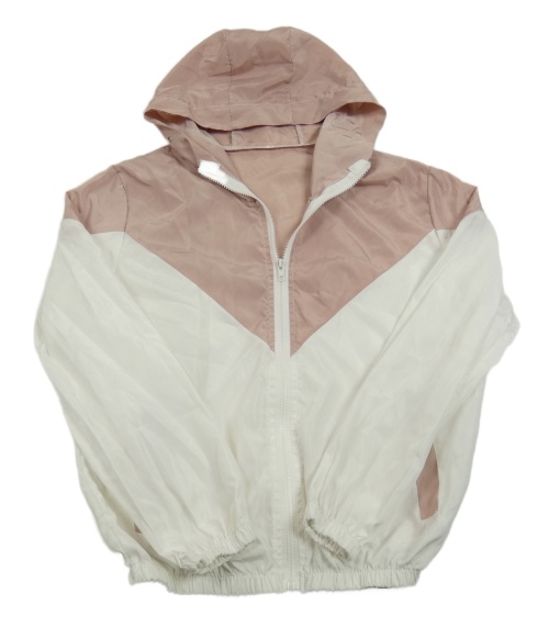 Světlerůžovo-bílá šusťáková bunda s kapucí