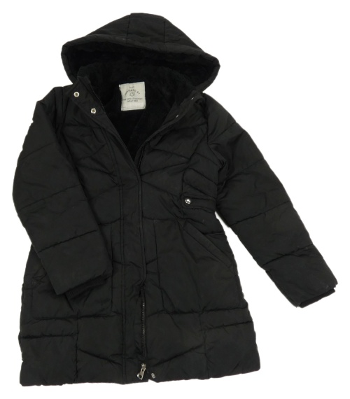 Černý šusťákový prošívaný zimní kabát s kapucí George