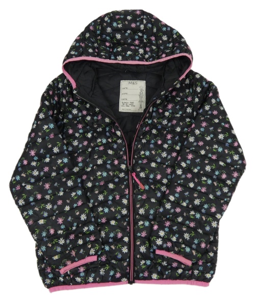Černá květovaná šusťáková zateplená bunda s kapucí M&S