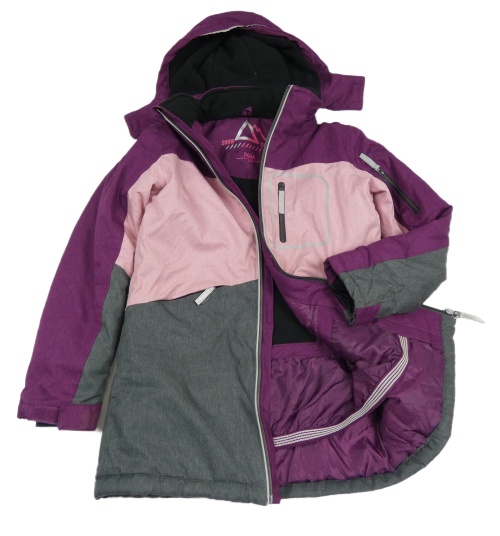 Fialovo-světlerůžovo-šedá šusťáková zimní bunda s kapucí Yigga