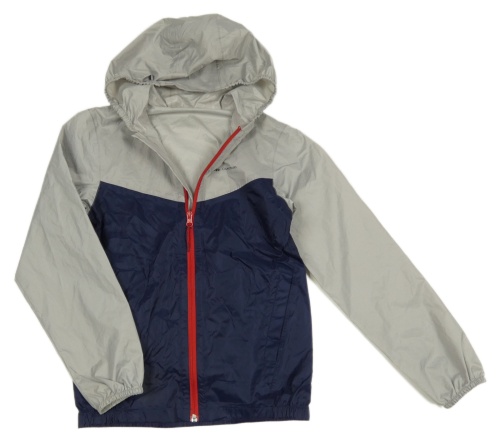 • Šedo-tmavomodrá šusťáková nepromokavá funkční bunda s kapucí Quechua