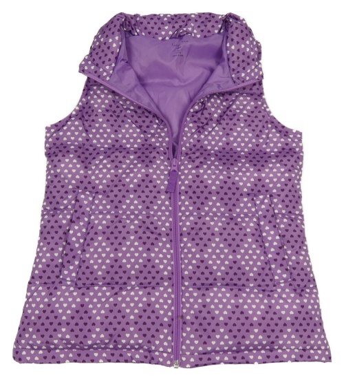 Fialová prošívaná šusťáková zateplená vesta se srdíčky LANDS'END