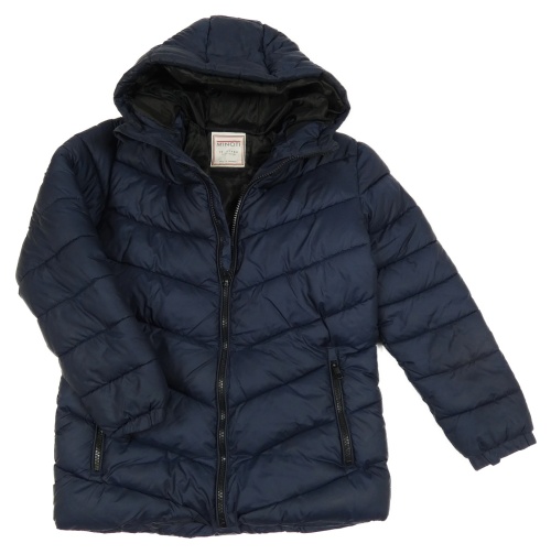 Tmavomodrá šusťáková prošívaná zimní bunda s kapucí Minoti